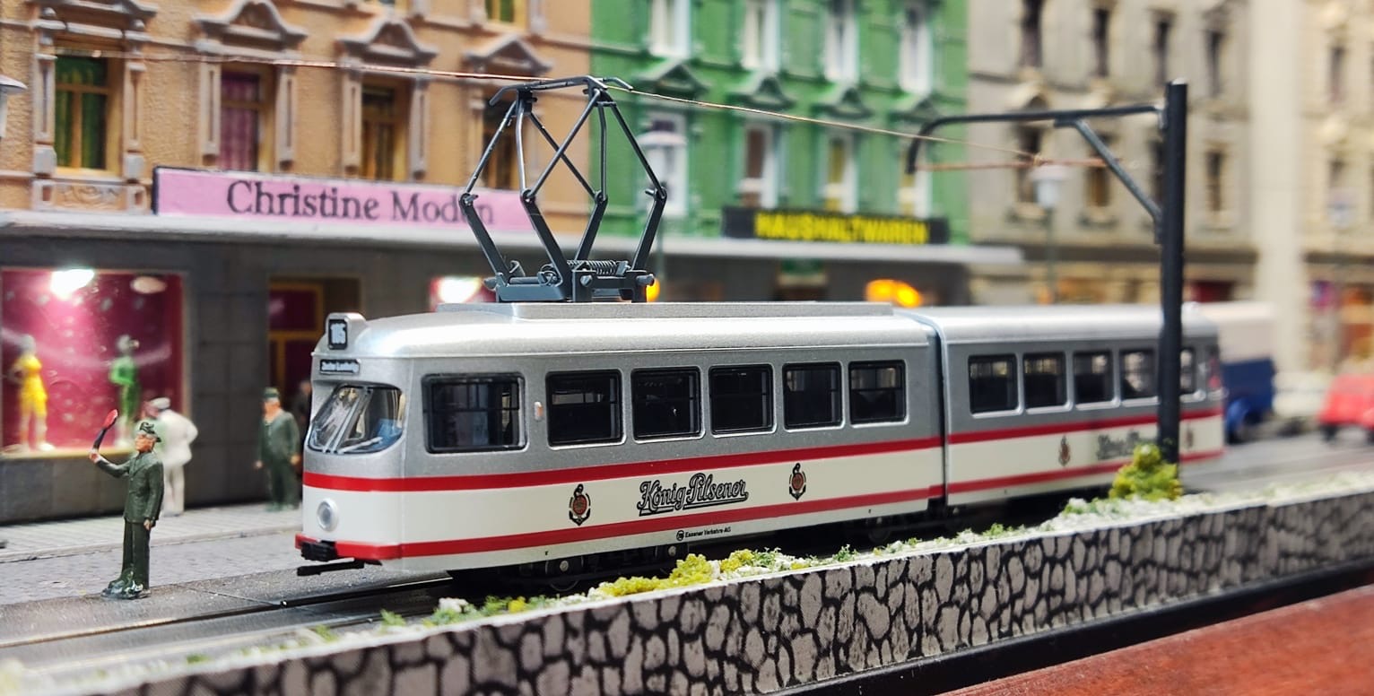 ... kam auf der Intermodellbau 2024 in Dortmund auf mich zu und fragte, ob Sie Ihre Neuheiten auf de Bahnhofsstrooß fotografieren dürfte und in den Medien nutzen darf. NATÜRLICH sage ich da nicht nein- welch eine Ehre! Ich zeige nun hier die Fotos die Entstanden sind, Rechte liegen natürlich bei ARNOLD/HORNBY, Die Fotos sind verlinkt, mit einem Klick auf den "Link zur Bahn bei ARNOLD"  kommst Du auf die Seite von ARNOLD/HORNBY (arnoldmodel.com) und zwar direkt auf die Straßenbahn der Begierde. Es gibt die Bahnen Analog oder Digital ! Es sei angemerkt, dass ich keine finanziellen Vorteile dadurch habe, also unbezahlte Reklame !
